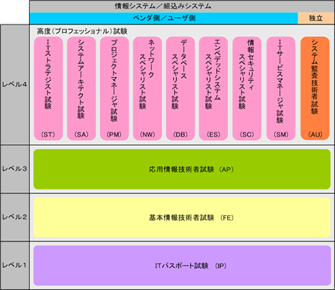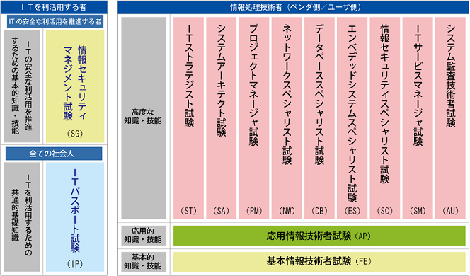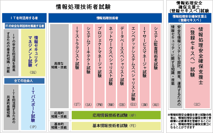 「情報処理の促進に関する法律」第29条の規定に基づき、経済産業省が情報処理技術者としての知識・技能が一定以上の水準であることを認定している国家試験