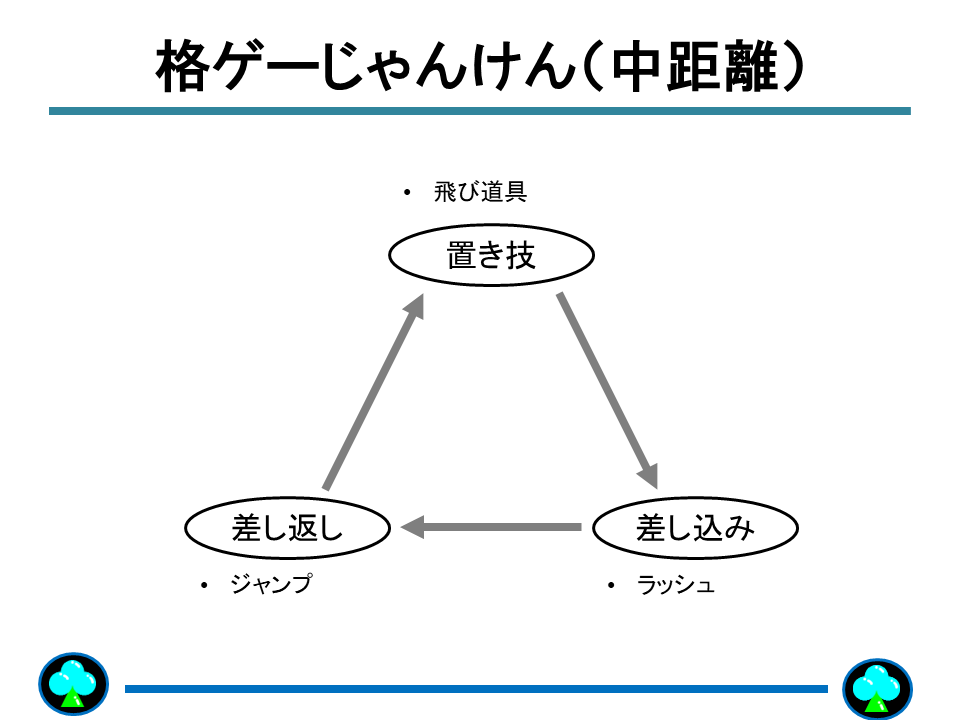 牽制をちらつかせながら地上と空中のコマンド投げを迫る戦い方