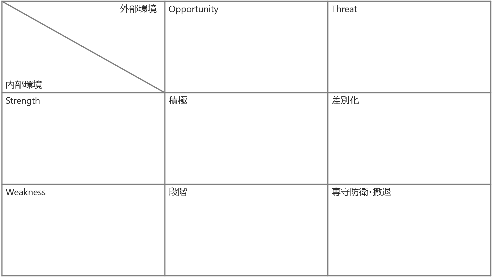 SWOT分析で、戦略を検討し、戦略を反映させたときにどういった修正が必要か(特にKR、KA、KP)を検討する